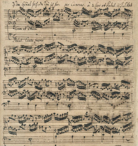 The Leipzig Chorales are contained in a manuscript that also includes the Six Trio Sonatas BWV 525-530, the Canonical Variations BWV 769a and the chorale Wenn wir in höchsten Nöten sein / Vor deinen Thron tret ich hiermit BWV 668 (which was later added to the first 17 chorales). They fall between these two approaches: created in the Weimar years alongside the Orgelbüchlein BWV 599-644 (an open collection of chorales in concise versions), Bach reworked this vast collection in the form of ‘various Preludes and Chorale Fantasies’, i.e. the most beautiful accomplishments , rather a collection than a cycle in that there is no obvious logical order, in contrast to Clavier-Übung III.